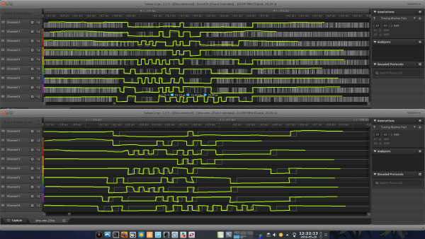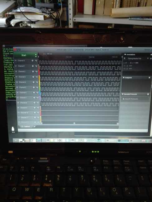 A questo punto Jakub propone di procedere diversamente: utilizzare, al posto dell’Arduino Mega, un analizzatore logico (Saleae) a 16 canali, procedere al dump dei segnali dell’intero nastro, ed interpretarli successivamente via software, secondo gli standard definiti su questo documento.