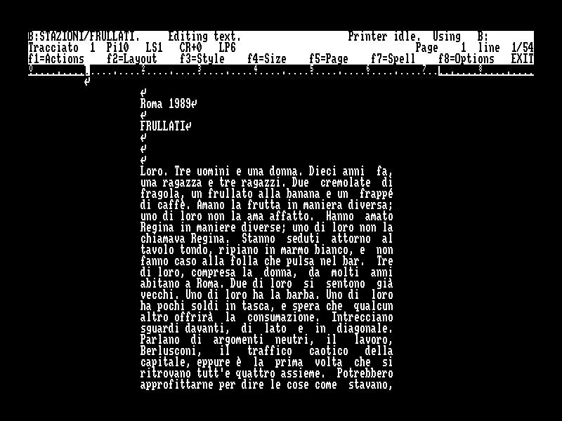 L’inizio di uno dei racconti ritrovati, nell’emulatore dell’ambiente originale