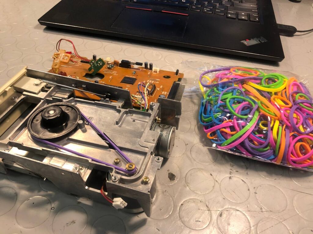 A differenza dei lettori più comuni da 3,5 pollici, la cui meccanica si basa sulla trazione diretta, questi particolari lettori fanno girare i dischetti con un meccanismo di trazione a cinghia, che, a 30+ anni dalla produzione rappresenta un punto critico ovvio per il dispositivo, poichè la gomma nel tempo perde la sua caratteristica elasticità e tende a irrigidirsi, diventando fragile. In effetti, la cinghia del lettore che abbiamo trovato ci si è letteralmente sbriciolata tra le mani non appena la abbiamo toccata.