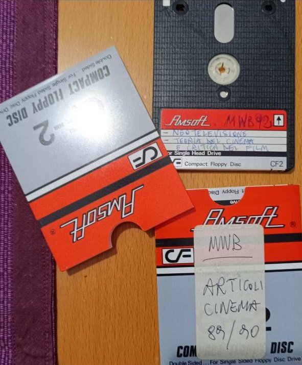 Una serie di indizi presenti sui supporti ci fanno pensare che i dati di MWB siano stati prodotti su un computer della stessa serie, probabilmente lo stesso modello presente nella nostra collezione. Infatti la “Amsoft“, marchio presente su tutti i floppy, era una società sussidiaria di proprietà di Amstrad; inoltre, sull’etichetta di un dischetto è possibile leggere la dicitura “Locoscript“, ovvero il nome di un software di videoscrittura prodotto quasi esclusivamente per la linea di computer Amstrad PCW. Tecnicamente si tratta di computer costruiti attorno al processore Zilog Z80, e dotati di un sistema operativo CP/M – una combinazione hardware/software molto diffusa negli 80s.