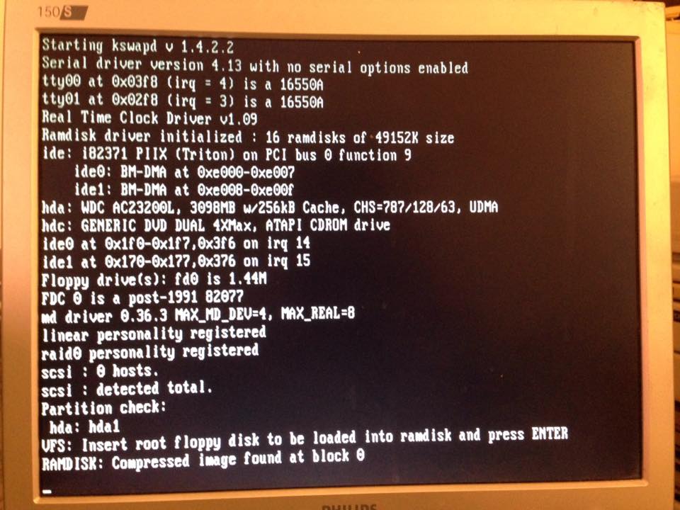 Nell’ambito di un progetto di recupero dati (che sara’ oggetto di un prossimo articolo) e’ saltata fuori una problematica di installazione di kernel e compilazione moduli di sistema che ci ha impegnati per circa tre giorni. Durante tanta fatica, ci e’ venuto in mente di provare questa nostra distro per vedere se cio’ che oggi va compilato a mano e fatto funzionare a suon di bestemmie, era in realta’ perfettamente funzionante gia’ nella versione 3.6 di un sistema del 1999.