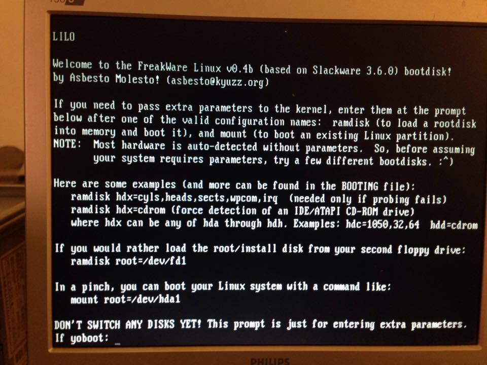 Attorno al 1999, nel Freaknet Medialab, all’interno del Centro Sociale AURO di Catania, pensammo di realizzare una nostra piccola distribuzione GNU/Linux, dedicata a quelle che gia’ allora reputavamo essere computer molto vecchi. Quindi, una distribuzione leggera, orientata a macchine poco potenti, ma anche una serie di tool ed utility DOS nonche’ documentazione storica e programmi di varia utilita’.