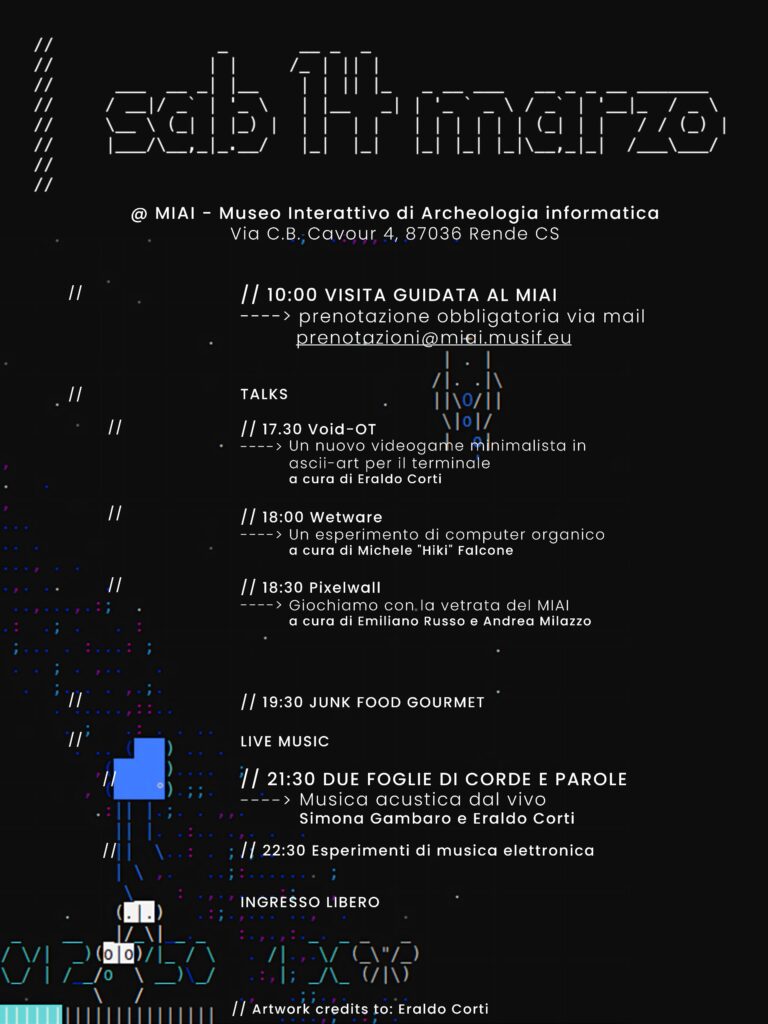 - ore 17:30 – Void-OT: un nuovo videogame minimalista per il terminale, a cura di Eraldo Corti